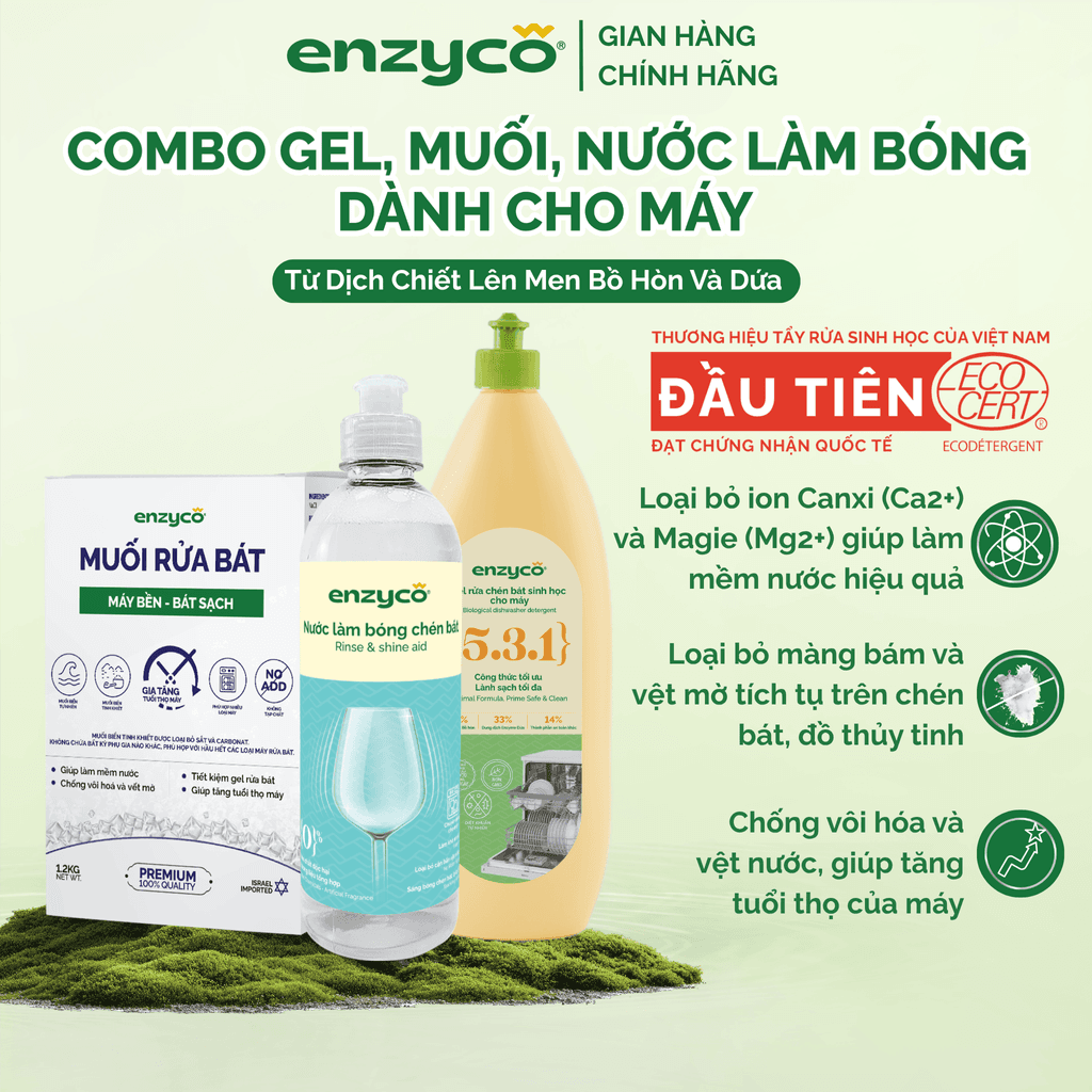 Combo Gel Rửa Bát, Muối Rửa Bát & Nước Làm Bóng Chén Đĩa Dành Cho Máy ENZYCO - Chiết Xuất Bồ Hòn&Dứa