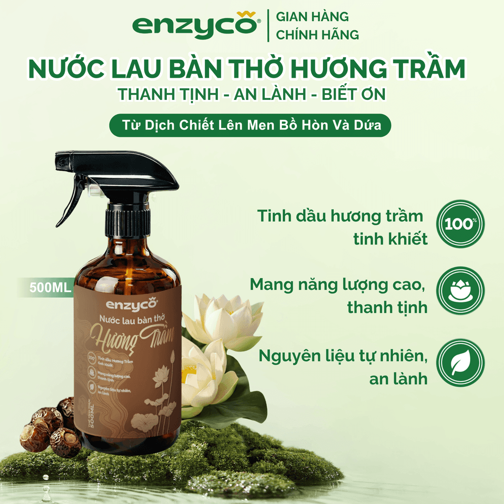 Nước Lau Bàn Thờ Hương Trầm ENZYCO - Từ Dịch Chiết Lên Men Bồ Hòn Và Dứa - Nước Bao Sái Bàn Thờ, Lau Đồ Thờ Gỗ/Đồng/Men - Chai 500ml