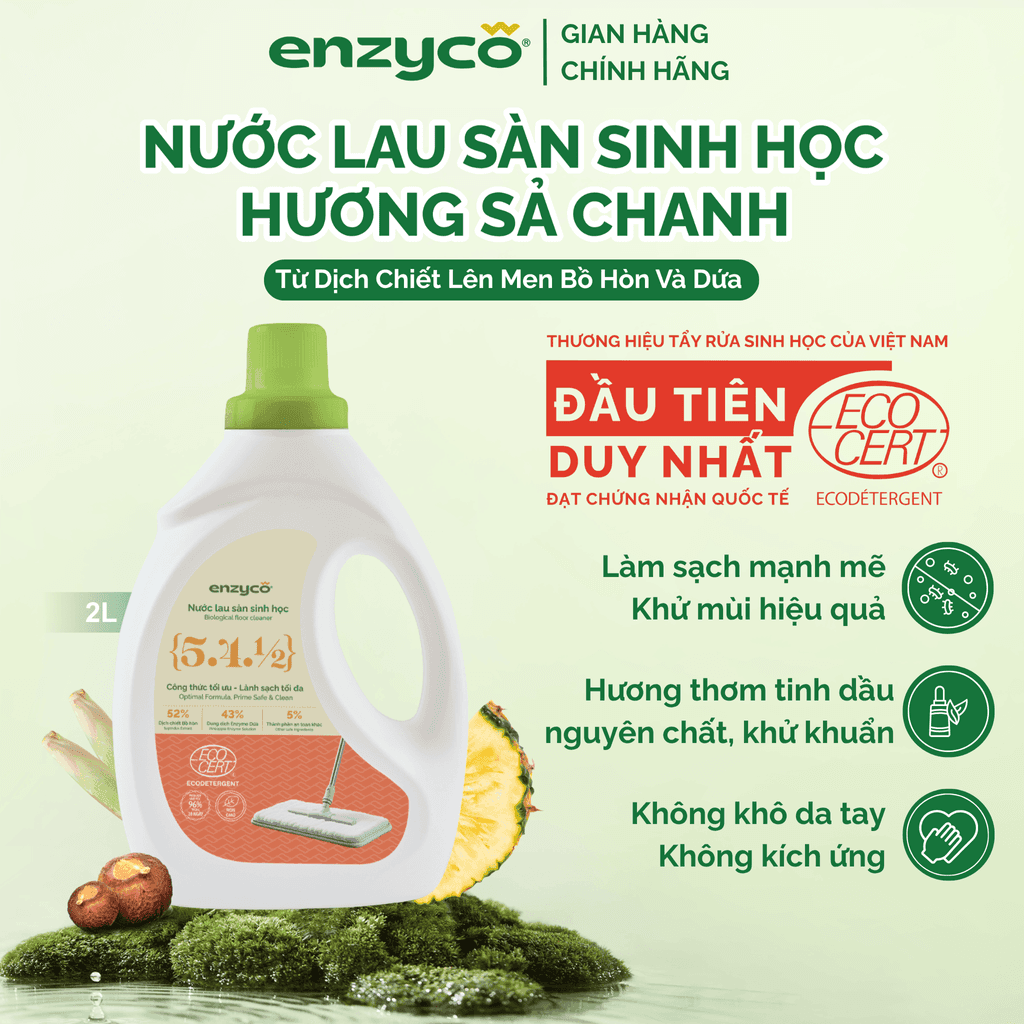 Nước Lau Sàn Sinh Học ENZYCO - Từ Dịch Chiết Lên Men Bồ Hòn Và Dứa - Hương Sả Chanh - Diệt Khuẩn Mạnh Mẽ, An Toàn Khi Chạm Và Hít Thở - Can 2L/Can4L