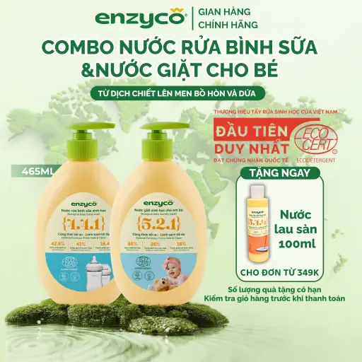 Combo Nước rửa bình sữa & Nước giặt sinh học cho bé 465ml ENZYCO Từ Bồ Hòn & Dứa, Chứng Nhận ECOCERT