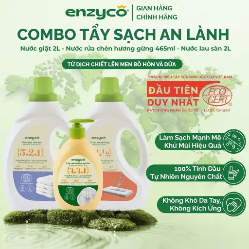 Combo Tẩy Sạch An Lành ENZYCO - Nước Lau Sàn 2L, Nước Rửa Bát 465ml, Nước Giặt 2L Từ Bồ Hòn & Dứa