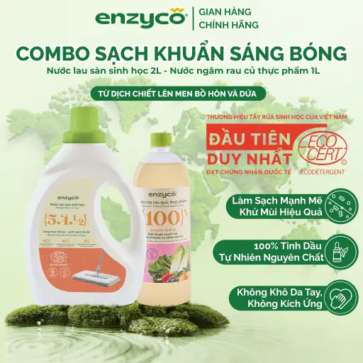 Combo Sạch Khuẩn Sáng Bóng - Nước Lau Sàn 2L&Nước Rửa Rau Quả Thực Phẩm 1L ENZYCO Chứng Nhận ECOCERT