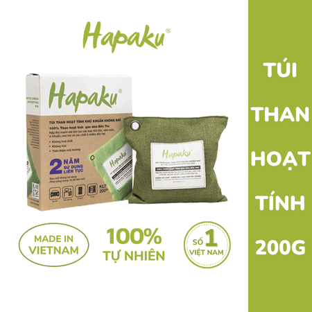 Túi Than Hoạt Tính Gáo Dừa Bến Tre Hapaku 200g/500g - Khử Mùi Ô Tô, Tủ Lạnh, Nhà Vệ Sinh, Hút Ẩm Khử Khuẩn Tự Nhiên - Freeship Toàn Quốc