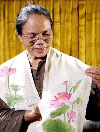 Khăn lụa tơ tằm thêu hoa sen (55cm x 200cm)