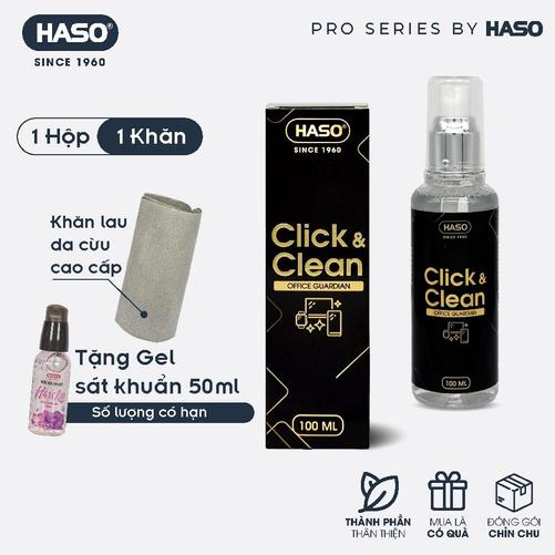 Chai xịt vệ sinh Haso Click&Clean Vệ Sĩ Văn Phòng 100ml,Vệ sinh màn hình Laptop,Điện Thoại,Máy tính bảng, Apple Watch,Chuột máy tínhBàn phím,Bàn làm việc...,Khử mùi kháng khuẩn, Tích bụi bẩn dễ dàng vệ sinh,Không lưu vệt sau khi lau - Tặng Kèm Khăn Da Cừu