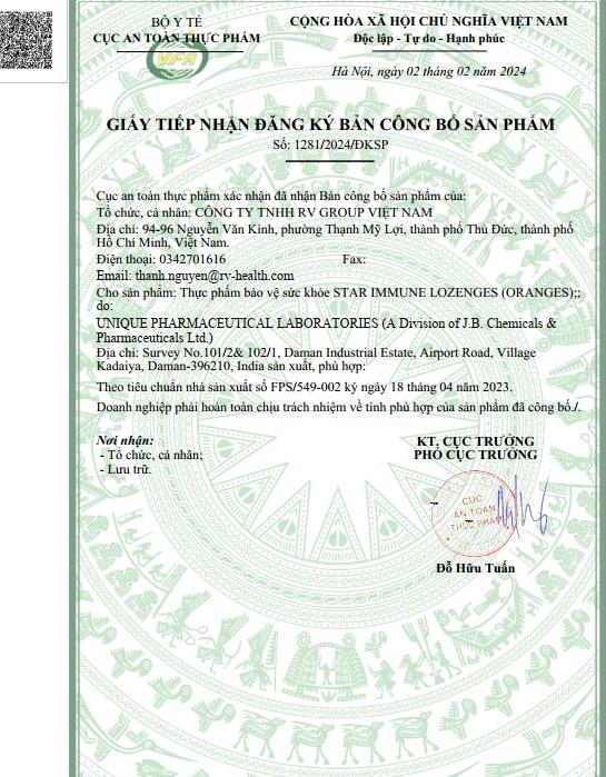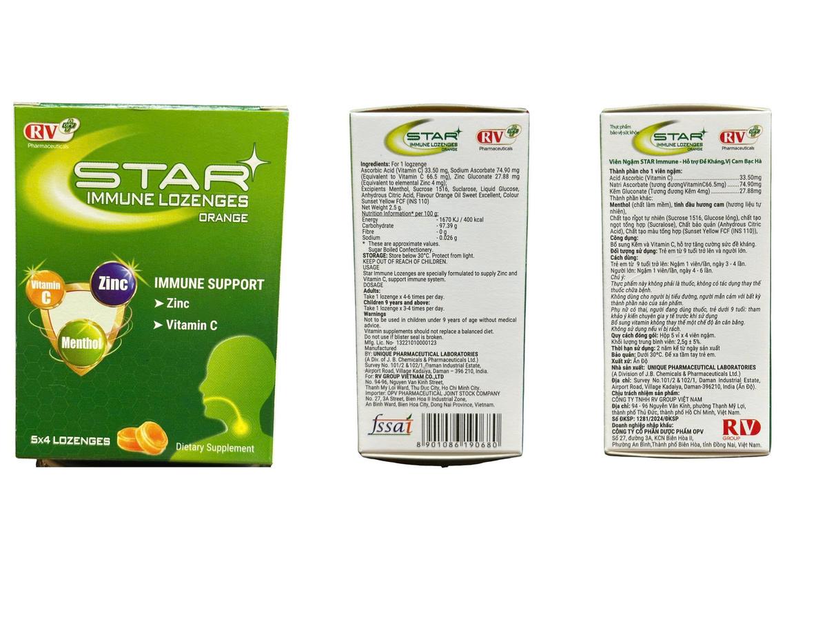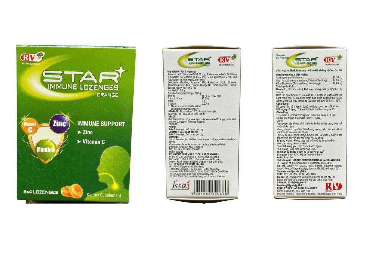 Thực phẩm bảo vệ sức khỏe STAR IMMUNE LOZENGES (Hương Cam)