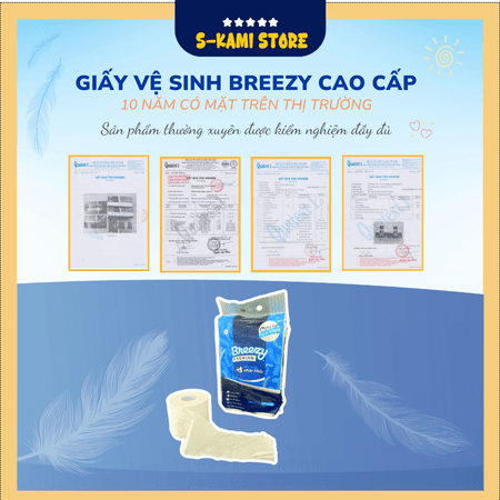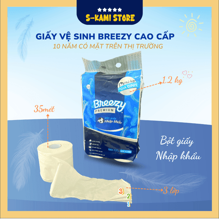 – Tên sản phẩm: Giấy vệ sinh Breezy, giấy vệ sinh cao cấp loại 06 cuộn 3 lớp chính hãng mềm mịn siêu dai, cuộn dài 35m, nặng 1,2kg