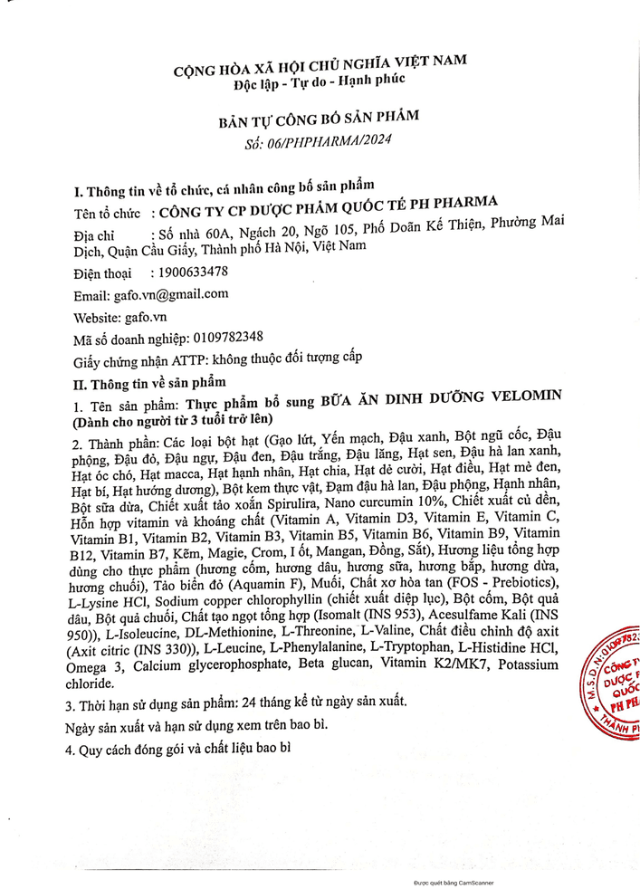 BỮA ĂN DINH DƯỠNG VELOMIN 5 VỊ