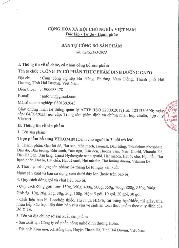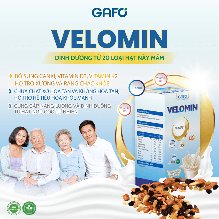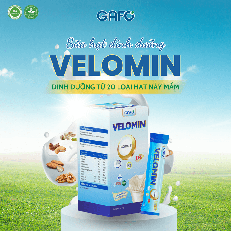 Ngũ cốc Velomin là sản phẩm dinh dưỡng từ hạt tự nhiên, được nghiên cứu và phát triển bởi Công ty CP Thực phẩm Dinh dưỡng Gafo, mang đến giải pháp hoàn hảo để chăm sóc sức khỏe cho cả gia đình. Với thành phần giàu dưỡng chất, Velomin không chỉ cung cấp nguồn năng lượng dồi dào mà còn hỗ trợ phát triển thể chất và cải thiện sức khỏe toàn diện.