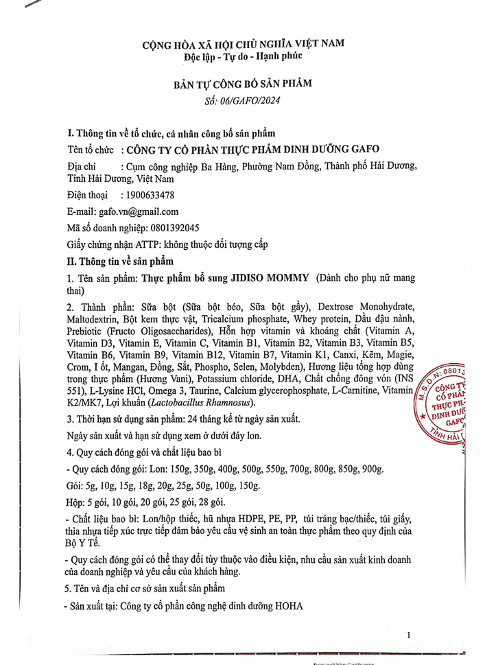 - Nhà sản xuấtSỮA DD GAFO