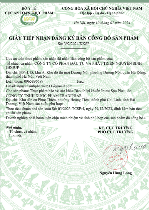 Bào tử lợi khuẩn Intest Spo Plus men vi sinh bổ sung 5 tỷ bào tử lợi khuẩn hỗ trợ rối loạn tiêu hóa Hộp 20 ống