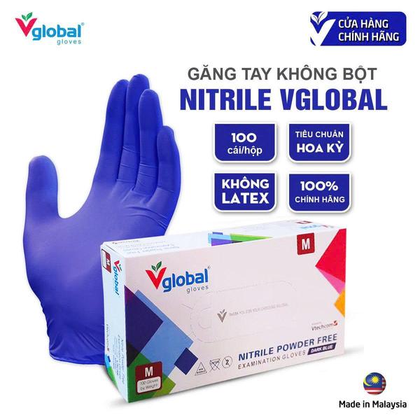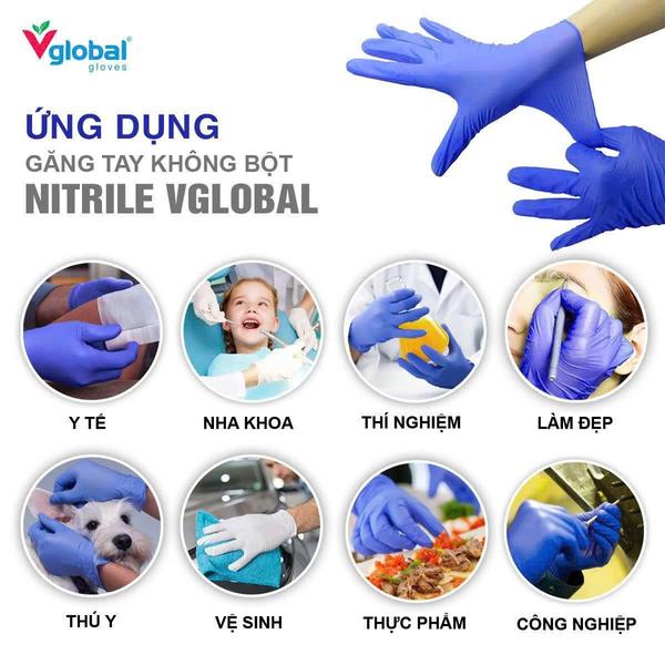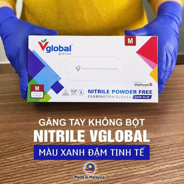 Combo 100 thùng màu xanh Găng tay kiểm tra Nitrile không bột VGLOBAL (Combo 100 thùng màu xanh)