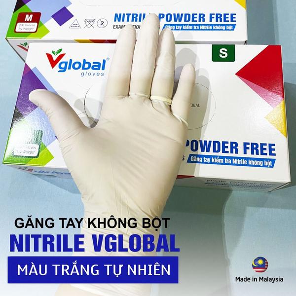 10 thùng màu trắng Găng tay kiểm tra Nitrile không bột VGLOBAL