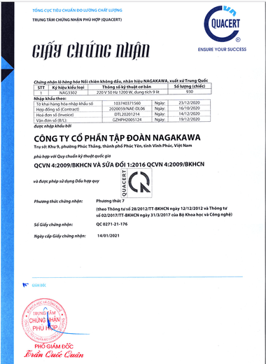 - Sản phẩm chính hãng Nagakawa, được lắp đặt, kết nối đồng bộ đúng tiêu chuẩn và quy chuẩn kỹ thuật của nhà sản xuất.