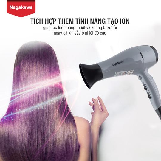 Ngoài ra, máy sấy tóc Nagakawa NAG1606 còn có chức năng tạo ion sẽ giúp giảm nhiệt lượng cần phải có để sấy khô tóc từ đó giữ được độ ẩm cần thiết cho tóc.