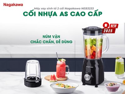 Trong nhịp sống hiện đại, một chiếc máy xay không chỉ cần mạnh mẽ mà còn phải tiện dụng, dễ dàng vệ sinh và đảm bảo an toàn tuyệt đối. Máy xay sinh tố 2 cối Nagakawa NEB3233 chính là lựa chọn hoàn hảo cho những ai yêu thích sự gọn gàng, linh hoạt, muốn biến việc nấu nướng trở nên nhẹ nhàng và thú vị mỗi ngày.