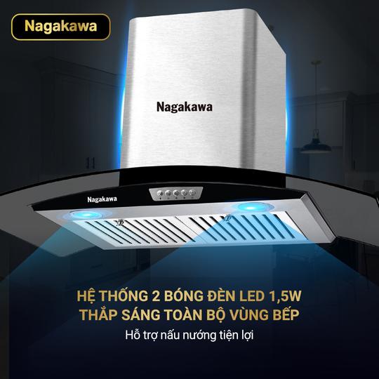Ánh sáng yếu khiến công việc bếp núc trở nên khó khăn. Máy hút mùi Nagakawa trang bị 2 đèn led tỏa sáng rộng khắp mặt bếp, ánh sáng dịu, dễ chịu, không làm mỏi mắt giúp người dùng dễ dàng quan sát, thuận tiện khi nấu nướng. Đặc biệt, đèn Led không tiêu tốn nhiều điện năng và có tuổi thọ cao hơn so với đèn halogen.