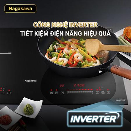 Bếp đôi điện từ Nagakawa NAG1214M sử dụng công nghệ biến tần Inverter kiểm soát công suất của thiết bị, nhằm tránh hao phí năng lượng trong quá trình sử dụng. Nguyên tắc cơ bản của công nghệ Inverter là dựa trên kiểm soát từng tần số dao động (Hz) của các bảng mạch bên trong bếp, giúp đảm bảo độ ổn định của bếp, tiết kiệm tối đa năng lượng và gia tăng tính năng thông minh cho bếp.