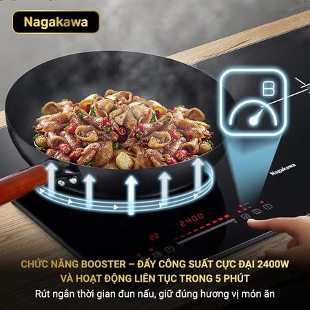 Bếp đôi điện từ Nagakawa NAG1214M với chức năng Booster giúp bạn lựa chọn mức công suất cao nhất khi muốn nấu các món đặc trưng cần gia nhiệt nhanh, giúp lưu giữ đúng hương vị món ăn mong muốn.