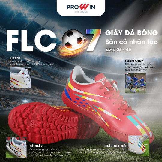 Prowin FCL 07 là sự kết hợp hoàn hảo giữa thiết kế thẩm mỹ nổi bật và tính năng thi đấu vượt trội, hứa hẹn mang đến trải nghiệm thi đấu linh hoạt, chắc chắn và đầy cảm hứng trên sân cỏ nhân tạo.