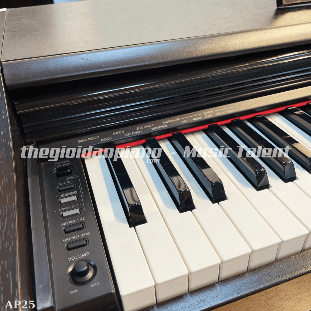 Biến thể và Model: Model AP-25 thuộc dòng Celviano AP series, phiên bản tiêu chuẩn (không có biến thể màu sắc đặc biệt, chỉ có tông gỗ đen hoặc nâu sẫm cổ điển). Đây là model tầm trung, kế thừa từ AP-220 nhưng nâng cấp âm thanh AiR cho chất lượng cao hơn.