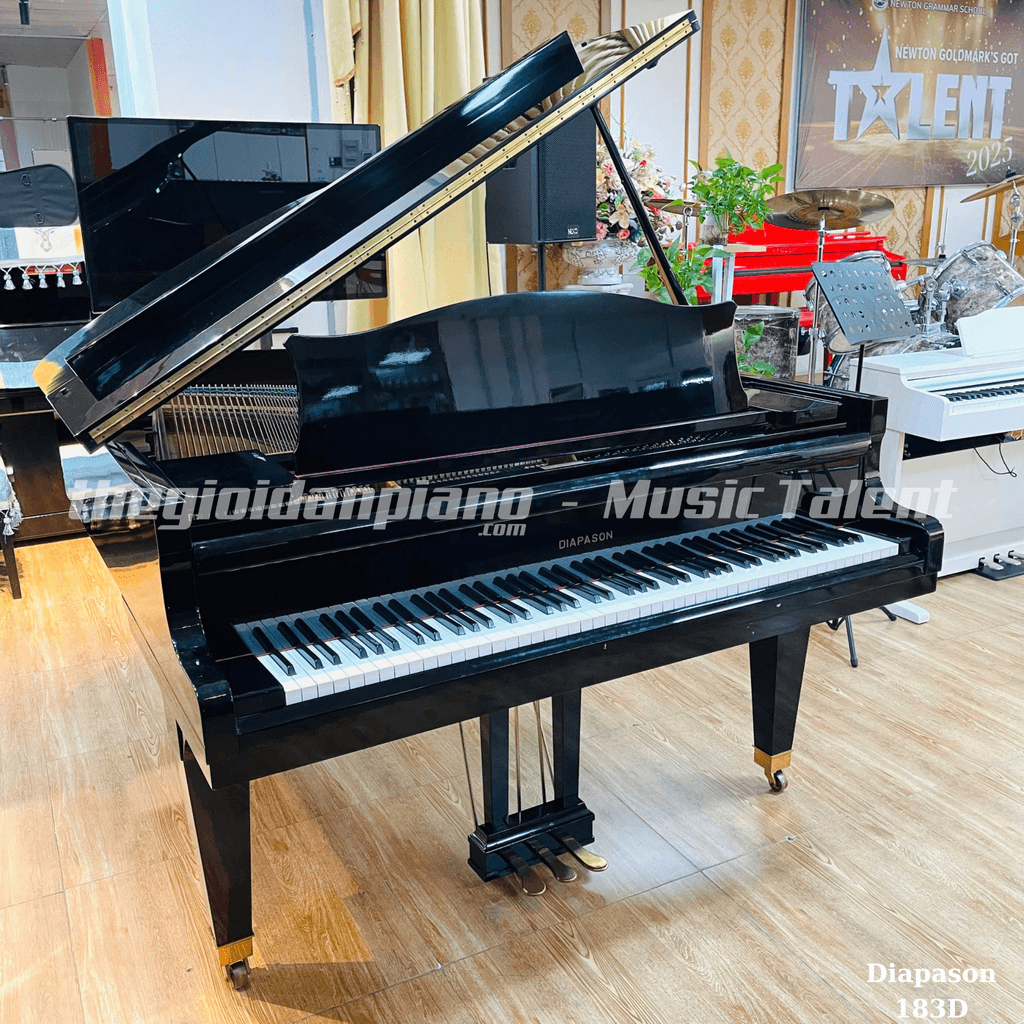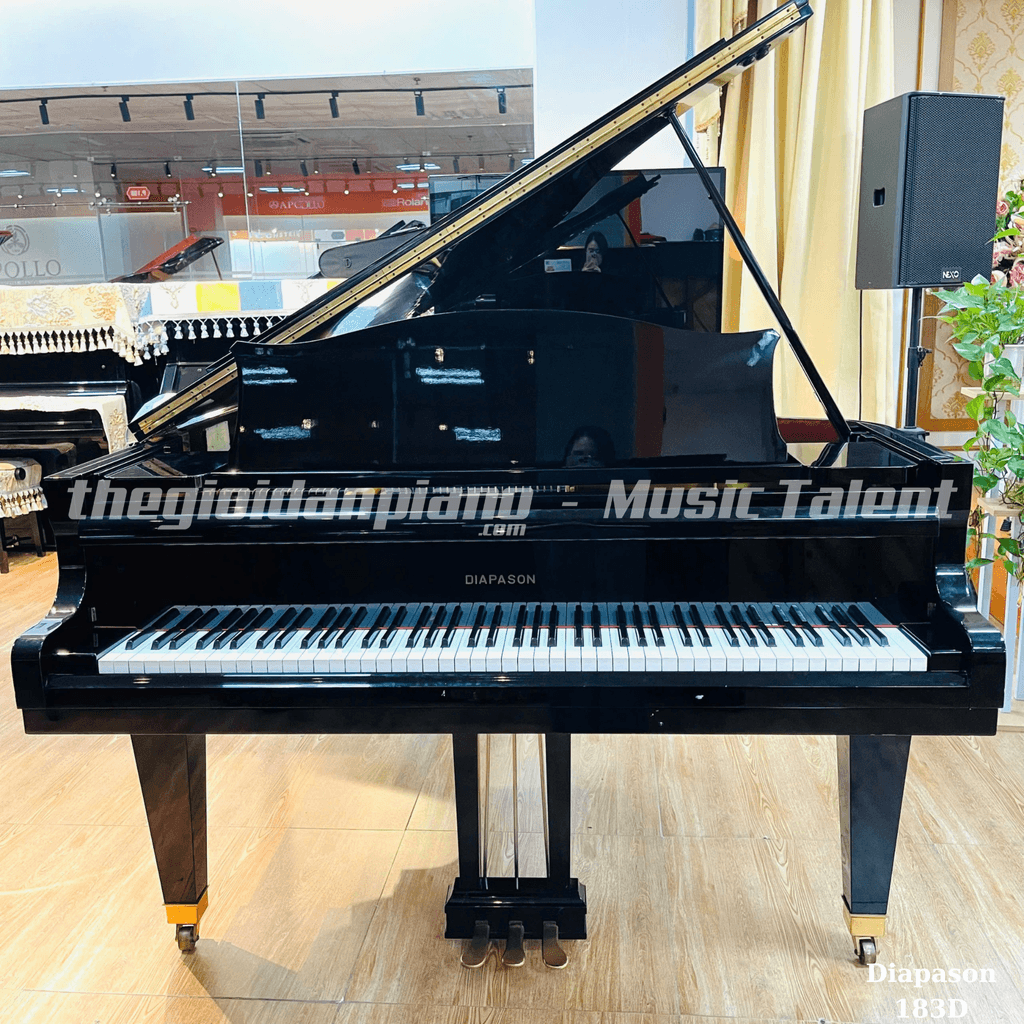 Công ty Cổ phần Đầu tư Yale Việt Nam (Music Talent), thành lập 2015, chuyên cung cấp nhạc cụ cao cấp, thúc đẩy giáo dục âm nhạc. Đàn Grand Diapason 183D, xuất xứ Nhật Bản, nổi bật với âm thanh trong trẻo, thiết kế thanh lịch. Công dụng: biểu diễn chuyên nghiệp, luyện tập tại nhà/studio. Lợi ích: âm thanh chuẩn mực, nâng tầm không gian, hỗ trợ phát triển kỹ năng piano lâu dài.