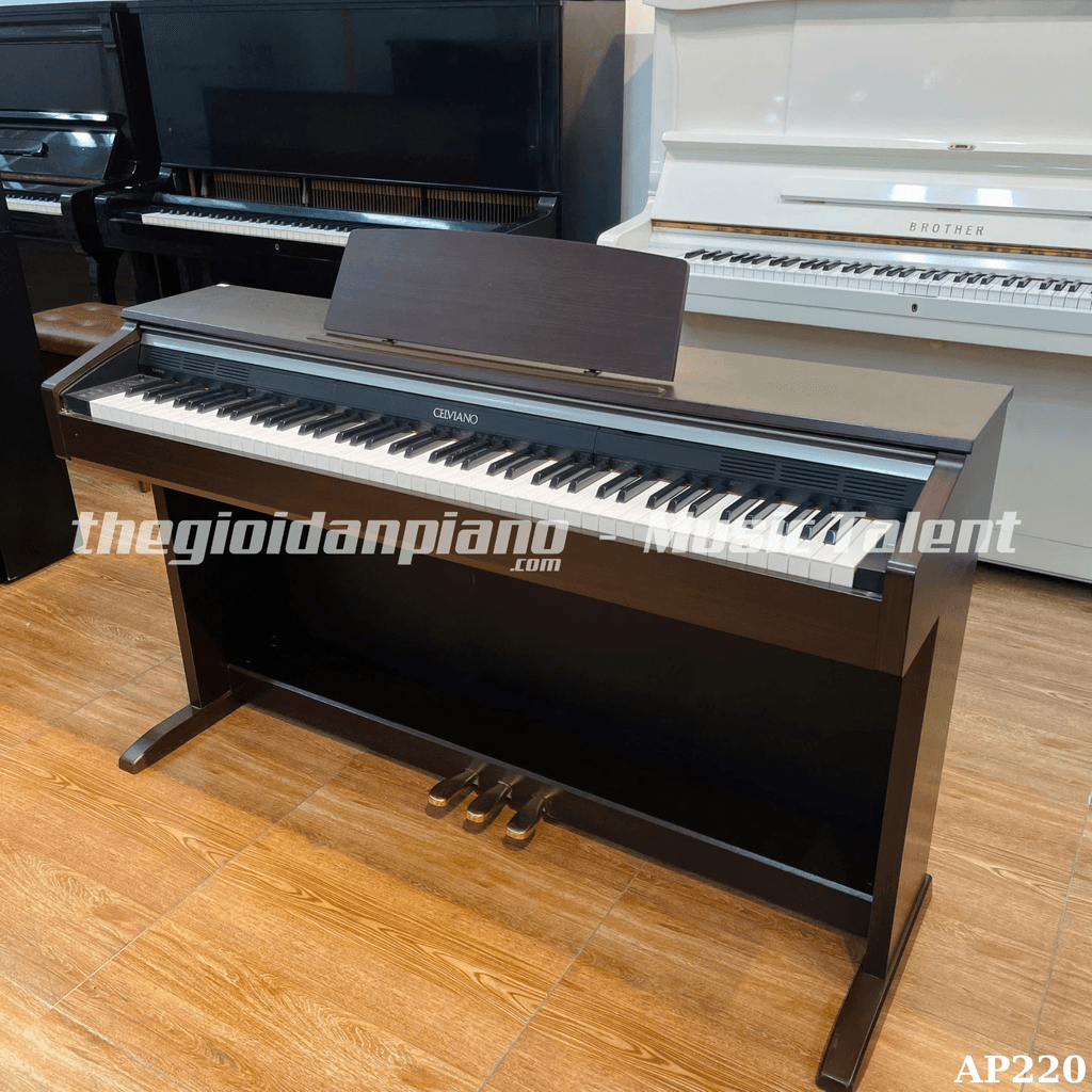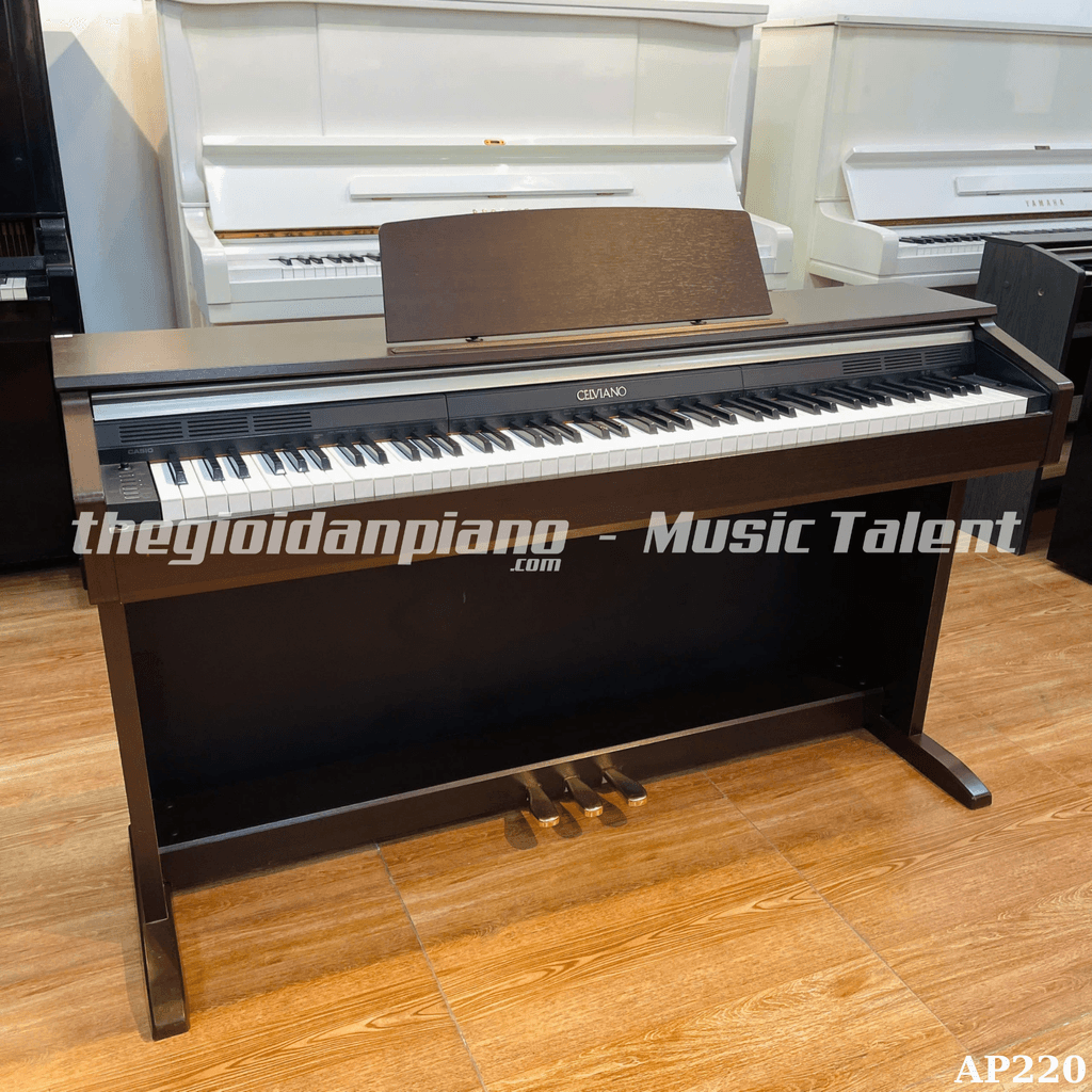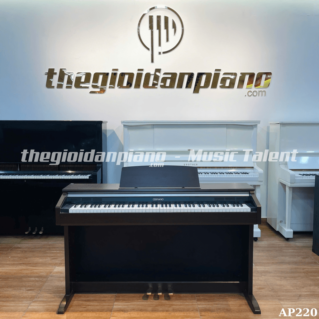 Đàn Yamaha AP220BN, piano upright từ Nhật Bản, mang âm thanh chuẩn mực, thiết kế nhỏ gọn. Công dụng: luyện tập tại nhà, học viện âm nhạc, biểu diễn nhỏ. Lợi ích: âm thanh chân thực, tối ưu không gian, hỗ trợ phát triển kỹ năng piano.