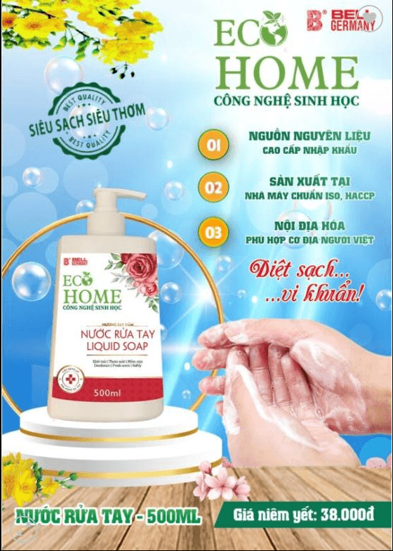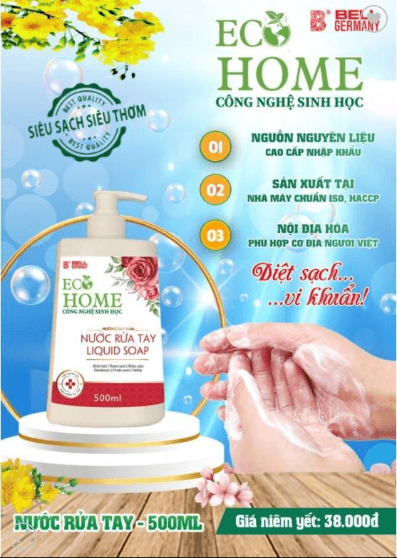 Nước rửa tay sinh học Ecohome 500ml là sản phẩm làm sạch cao cấp sản xuất tại Việt Nam, ứng dụng công nghệ sinh học kết hợp chiết xuất thiên nhiên, giúp làm sạch da tay, dưỡng ẩm và lưu lại hương thơm dễ chịu. Phù hợp cho mọi loại da, đặc biệt dành cho da nhạy cảm và sử dụng thường xuyên.