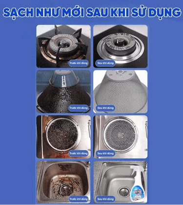 - Làm sạch đa năng: Loại bỏ vết dầu mỡ, cặn bẩn, vết ố trên bếp, sàn nhà, gạch men, inox, kính.