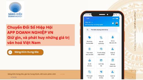 APP Doanh Nghiệp VN từ Sáng Kiến Hưng Gia là nền tảng chuyển đổi số số 1 cho Hiệp hội Doanh nghiệp Việt Nam. Giữ gìn & phát huy giá trị văn hóa Việt Nam, số hóa toàn diện tài liệu giấy → dữ liệu khoa học, thống nhất. Hỗ trợ xúc tiến thương mại quốc tế, khớp nối cung cầu, quản lý quỹ minh bạch. Kết nối B2B, mở rộng thị trường nội địa & quốc tế.