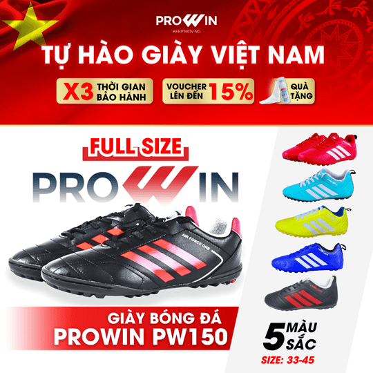 Giày đá bóng, giày đá banh sân cỏ nhân tạo Prowin PW150 nhẹ, êm, chống trơn trượt