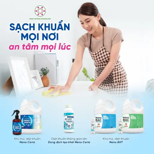 Công ty CP Nano Việt Nam Technology (Nano AHT) là đơn vị hàng đầu về công nghệ nano tại Việt Nam, tập trung sản phẩm an toàn, thân thiện môi trường. Dung Dịch Nano Bạc Nano Ceria là giải pháp khử khuẩn và khử mùi đa năng cho nhà cửa, sử dụng nano bạc để diệt khuẩn hiệu quả mà không chứa cồn hay hóa chất độc hại.
