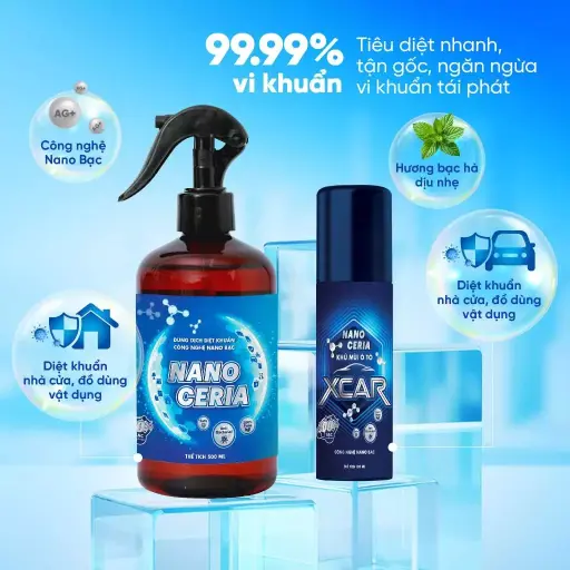 Dung Dịch Nano Bạc Nano Ceria nổi bật với nano bạc 30ppm, diệt khuẩn 99.99% và khử mùi hôi hiệu quả ngay lập tức, theo chứng nhận từ cơ quan uy tín. Không cồn, không hóa chất độc, sản phẩm an toàn cho trẻ em, thanh lọc không khí nhà cửa một cách thân thiện. Chọn Nano Ceria từ Nano Việt Nam Technology để không gian sống luôn sạch sẽ, trong lành, bảo vệ sức khỏe gia đình bạn!