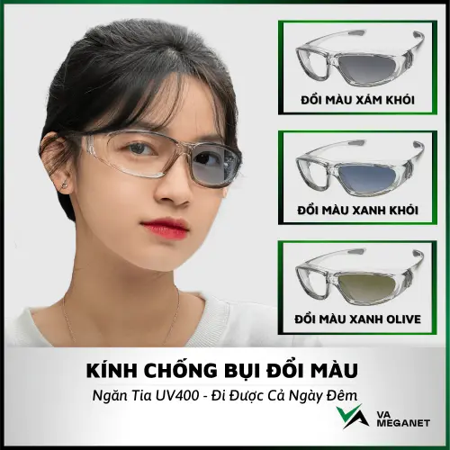 Kính chống bụi đổi màu chống chói VA MEGANET từ thương hiệu CROSSOVER là sản phẩm bảo vệ mắt thông minh, lý tưởng cho những ai thường xuyên di chuyển ngoài trời. Với công nghệ photochromic tự động đổi màu theo cường độ ánh sáng UV, chiếc kính này không chỉ chắn gió bụi, ngăn tia UV hại mà còn giảm chói sáng hiệu quả.
