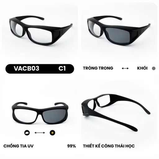 VACB-03 sử dụng công nghệ đổi màu tự động khi tiếp xúc ánh nắng, giúp mắt luôn dễ chịu: