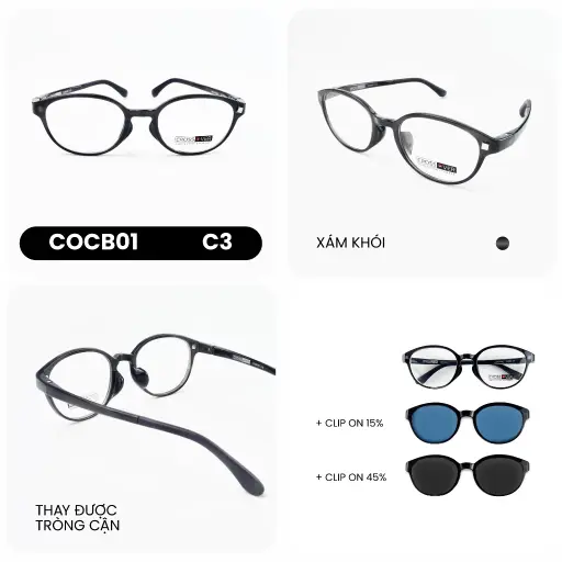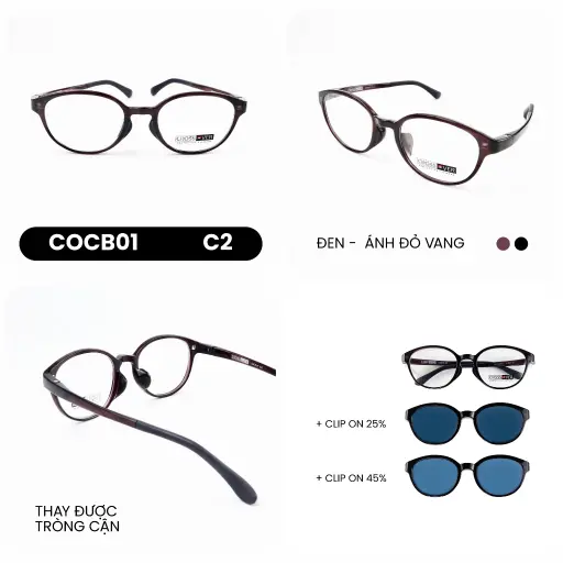 COCB-01 có thể thay tròng cận đúng độ, hỗ trợ thị lực, phù hợp sử dụng hằng ngày.
