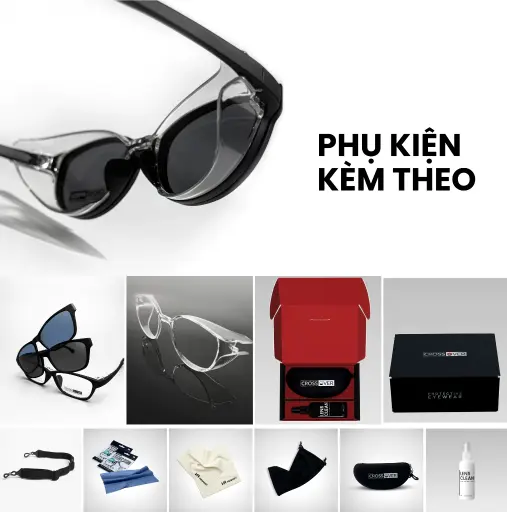 - 3-trong-1 tiện lợi: Kính cận - kính râm - kính chống bụi.