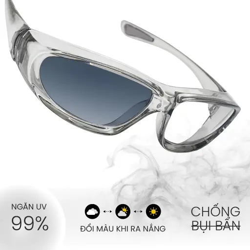 - Tự động đổi màu thông minh: Tròng sáng trong nhà hoặc ban đêm, tối nhẹ khi gặp nắng để chống chói.