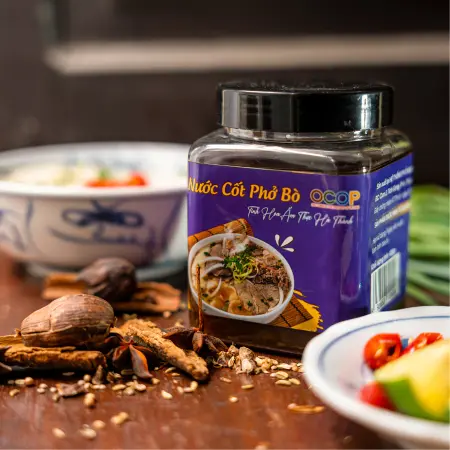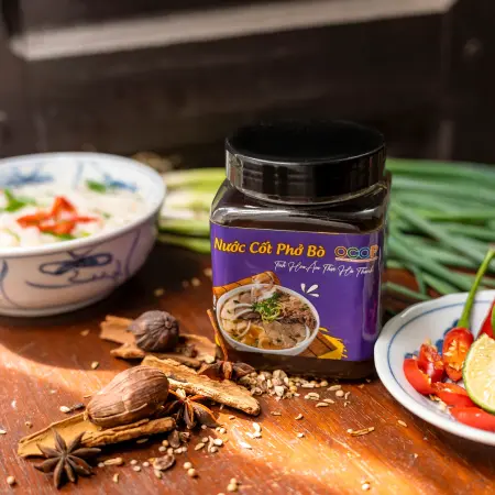 - Nước mắm cá cơm: Nguyên chất từ cá cơm, thêm chiều sâu umami cho hương vị phở truyền thống. (Tất cả nguyên liệu đều tự nhiên, không chứa phụ gia nhân tạo, đảm bảo an toàn và chuẩn vị Hà Nội.)