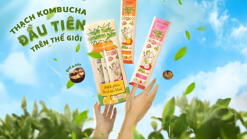 - 100% nguyên liệu thiên nhiên: Kombucha trái cây tươi, bột rau câu rong biển, vị ngọt chiết xuất từ quả la hán.