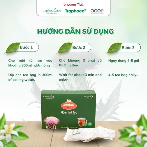 Trà Túi Lọc Actiso/ Atiso Sapa TRAPHACOSAPA Hỗ Trợ Sức Khoẻ Thanh Lọc Cơ Thể Hộp 20 Túi Lọc