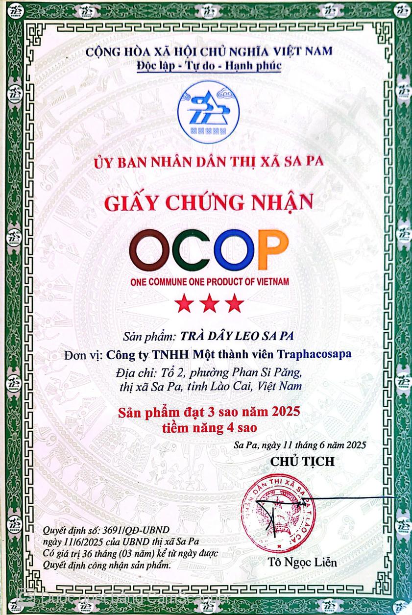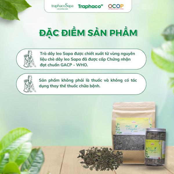 - Trà dây leo Sapa được chiết xuất từ vùng nguyên liệu chè dây leo Sapa đã được cấp Chứng nhận đạt chuẩn GACP - WHO.