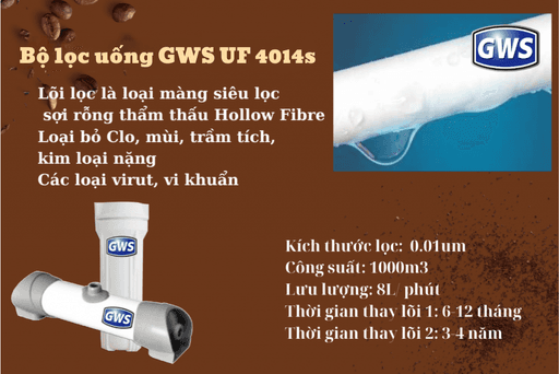 - Bộ lọc GWS UF 4014S đạt chất lượng quốc tế: Công nghệ Châu Âu. Đạt hiệu quả cao cho năng suất lọc đạt tiêu chuẩn cao cấp cho nước uống trực tiếp