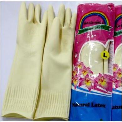 Găng tay cao su dài Sắc Cầu Vồng A, sản xuất tại Việt Nam, được làm từ 100% cao su thiên nhiên, mềm mại, bền lâu, chống thấm hiệu quả. Sản phẩm phù hợp cho rửa chén, giặt giũ, vệ sinh nhà cửa, chế biến thực phẩm và công việc bảo hộ.