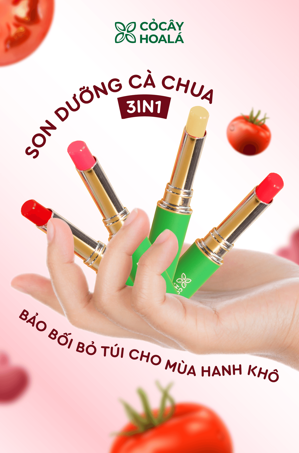 [Tặng Bột khử mùi gạo trà trị giá 80.000] Combo 3 Son dưỡng cà chua 3M tặng 1 ( Mix đủ 4 màu)