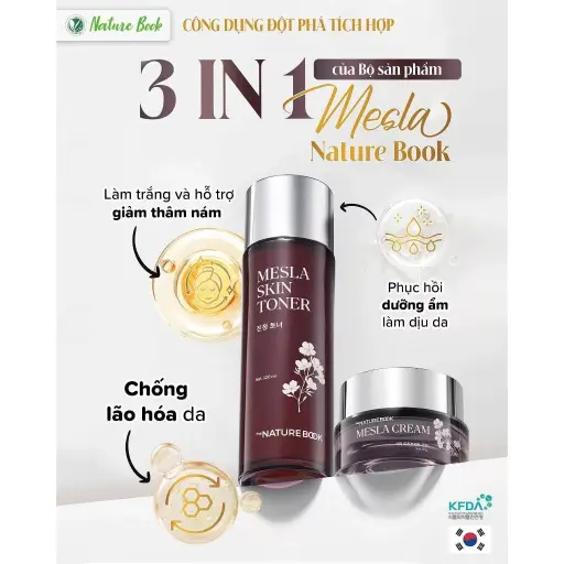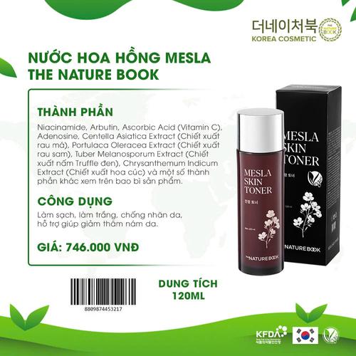Nước hoa hồng Mesla The Nature Book là dòng nước cân bằng cao cấp thuộc thương hiệu Nature Book Hàn Quốc. Sản phẩm được thiết kế đặc biệt để giải quyết các vấn đề về sắc tố da, giúp làm sạch sâu, hỗ trợ mờ thâm nám và nuôi dưỡng làn da trắng sáng rạng rỡ từ bên trong.