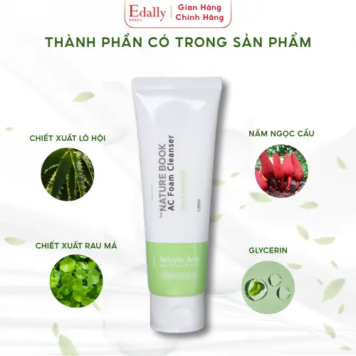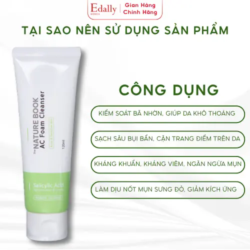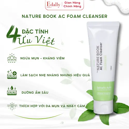 Sữa rửa mặt Nature Book AC Foam Cleanser là giải pháp chuyên biệt dành cho làn da dầu mụn và nhạy cảm. Với sự kết hợp mạnh mẽ giữa các thành phần tẩy tế bào chết hóa học và dưỡng chất thiên nhiên, sản phẩm giúp làm sạch sâu, hỗ trợ điều trị mụn và phục hồi cấu trúc da từ bên trong.