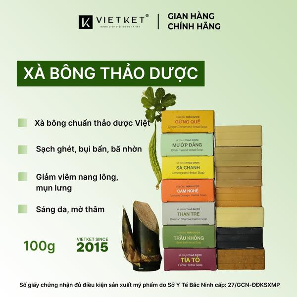 Xà Bông Tắm Thảo Dược Than Tre VIETKET 100g - Làm Sạch Sâu, Giảm Mụn Lưng, Sáng Da, Không Nhờn Rít