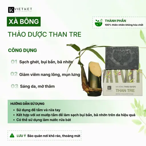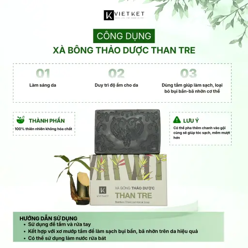 - Tên sản phẩm: Xà Bông Tắm Thảo Dược Than tre VIETKET