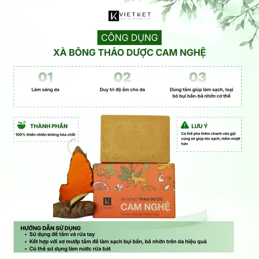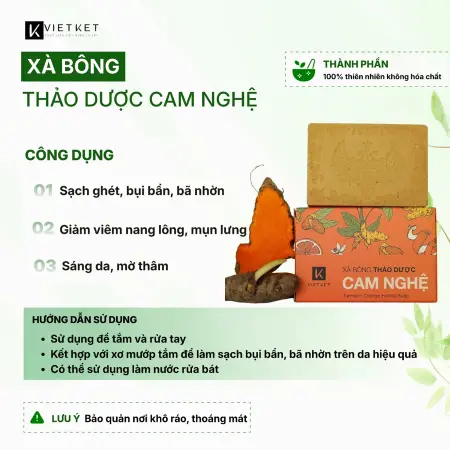 - Tên sản phẩm: Xà Bông Tắm Thảo Dược Cam Nghệ VIETKET